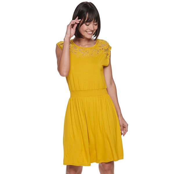 Petite Apt 9 Lace Yoke Smock Waist Dress