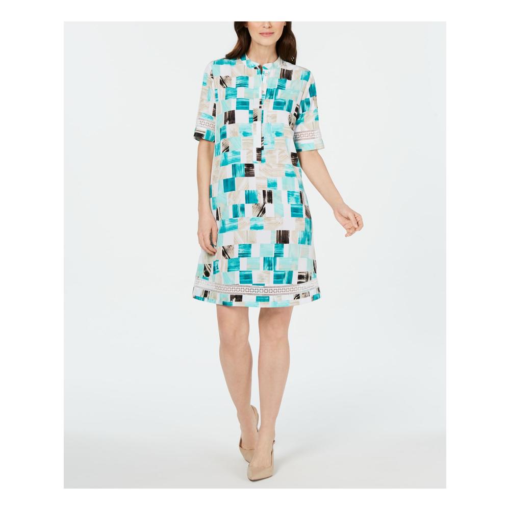 Alfani Alfani Womens Light Blue Printed Short Sleeve Collared Knee Length Shift Wear To Work Dress Size 12